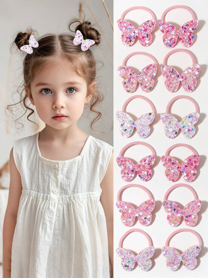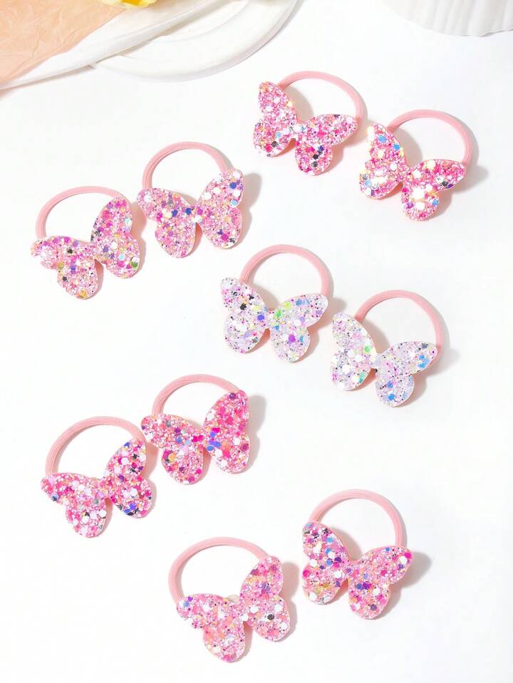 10pcs Multi-Color Glitter Butterfly Hair Scrunchies For Girls