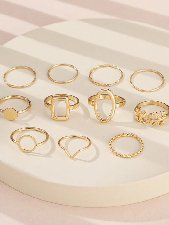 11pcs/Set Geometric Leaf Design Joint Rings Set For Women