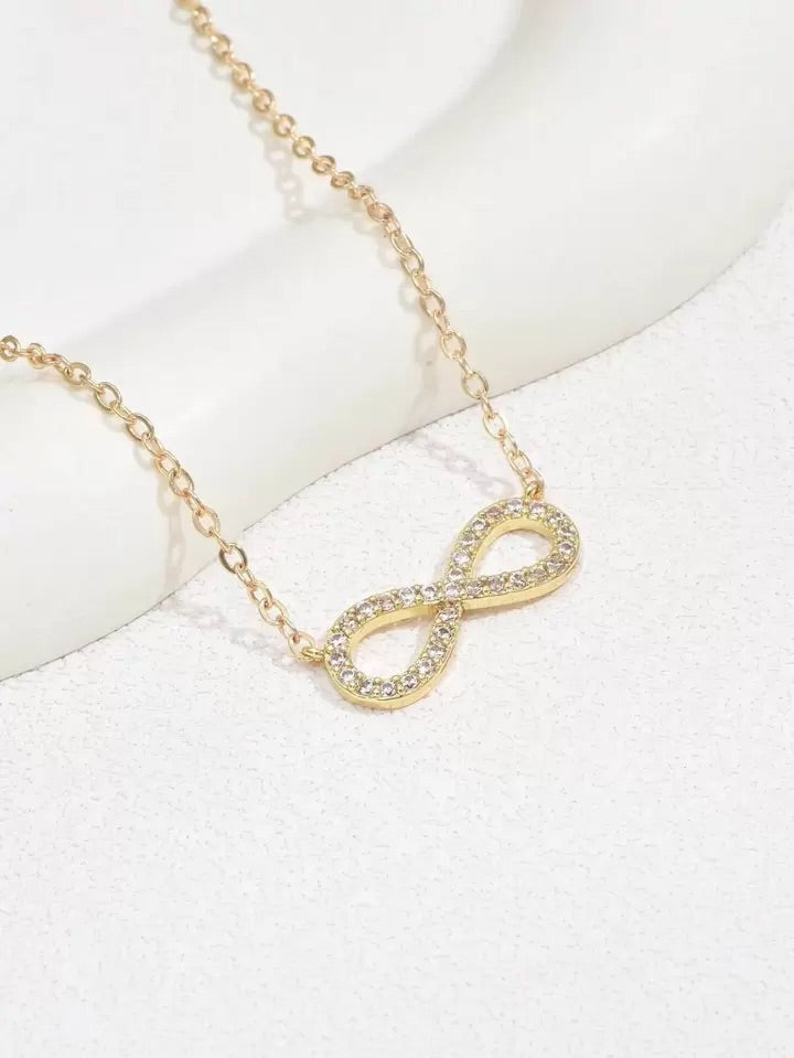 1pc Cubic Zirconia Infinity Symbol Charm Necklace Copper Jewelry