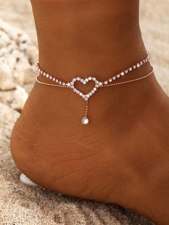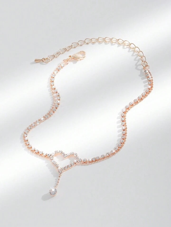 1pc Exquisite And Fashionable Multi-Layer Openwork Heart-Shaped Teardrop Pendant Anklet
