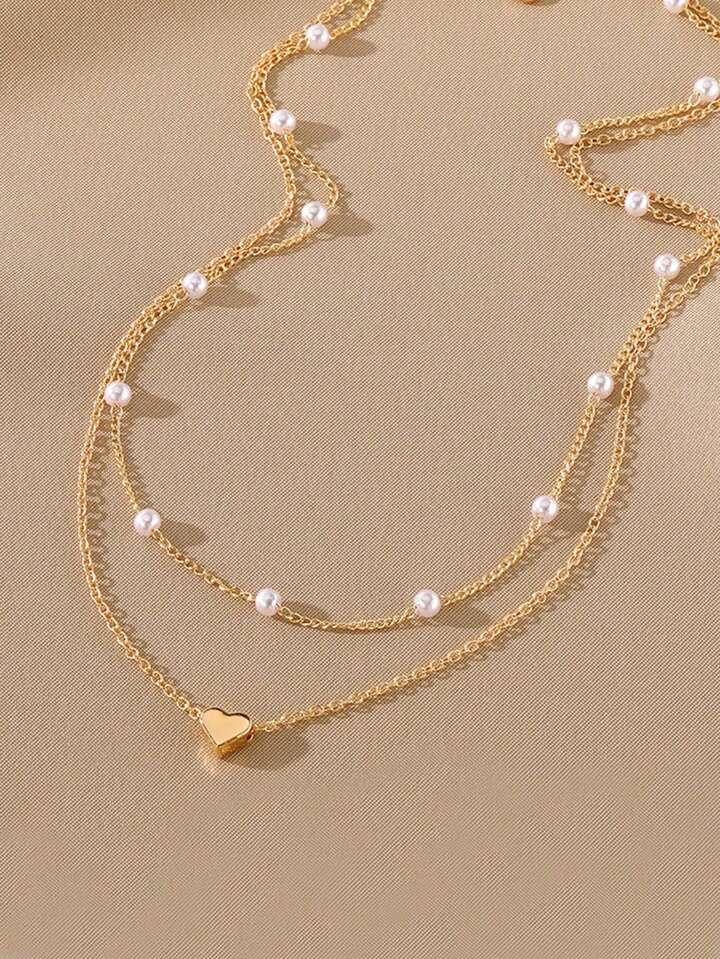 2pcs Heart-Shaped Pearl Pendant Necklace Set