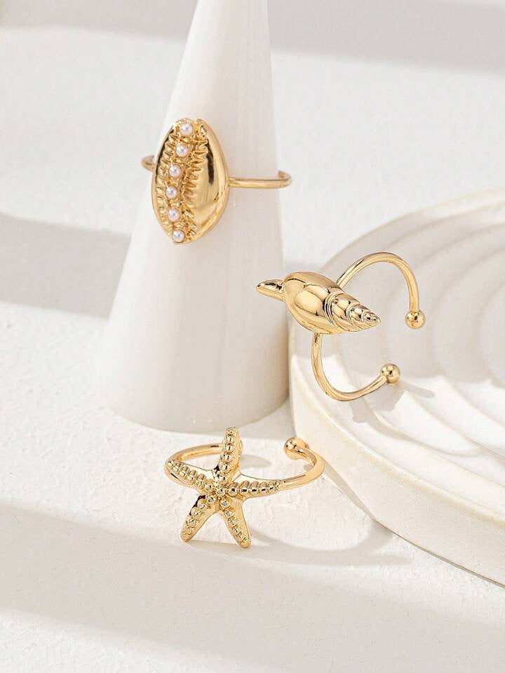 3 Pcs Summer Beach Rings Set Starfish Ring Jewelry Sea Shell Ring For Women