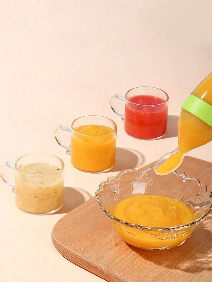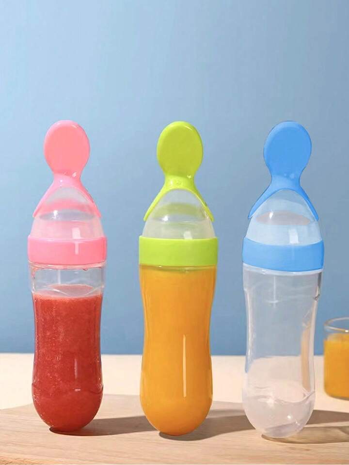 90ml/3oz Round Bottom Baby Silicone Bottle With Spoon & Dust Cover (1pc)