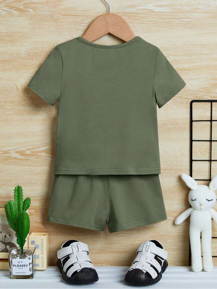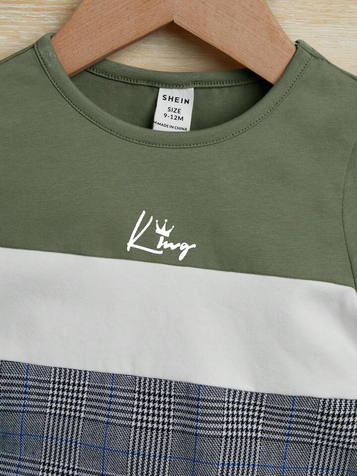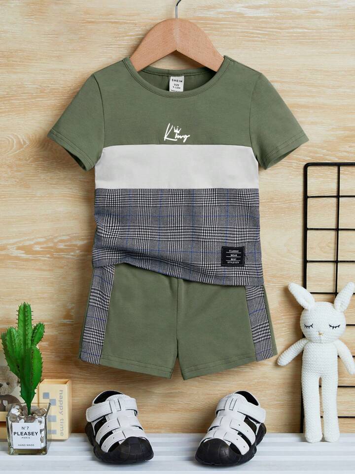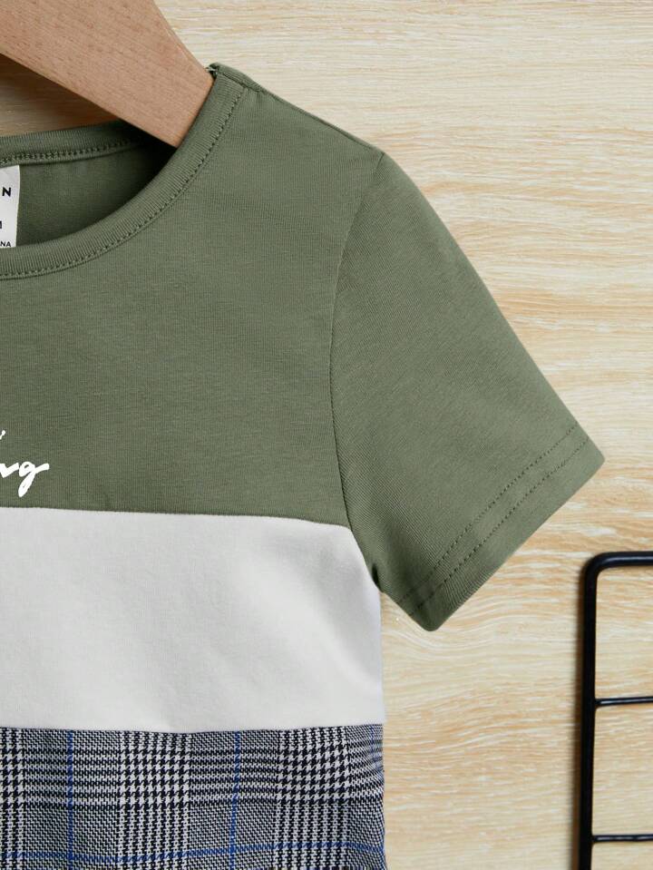 Baby Boy Crew Neck Contrast Color Block Plaid Short Sleeve Top And Shorts Set