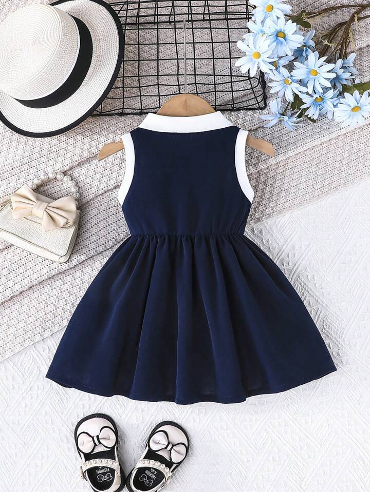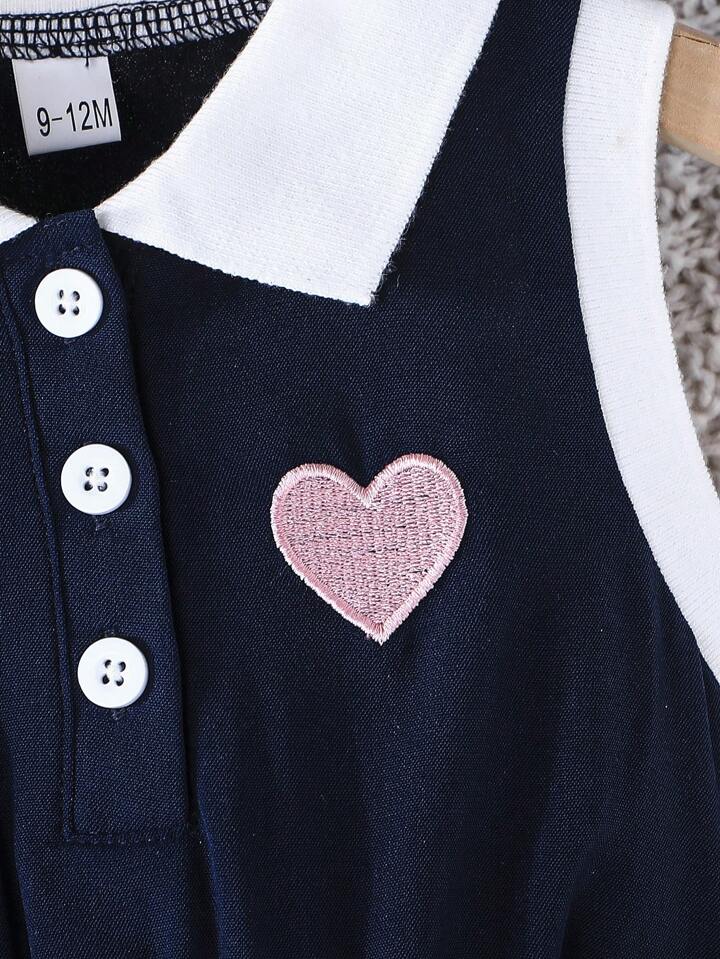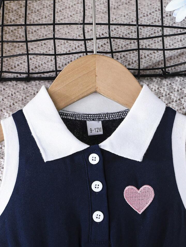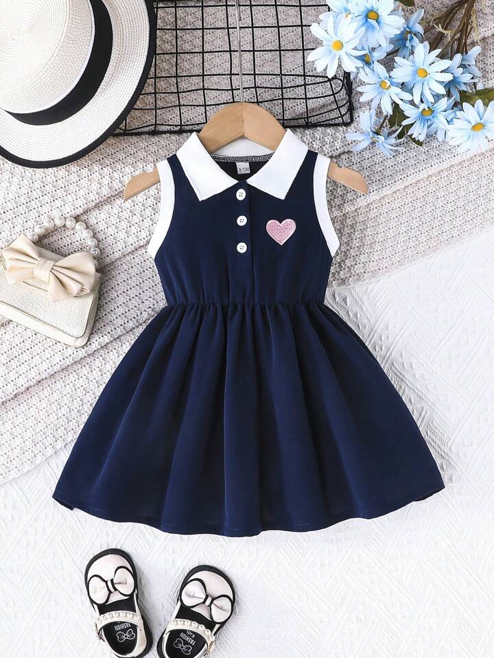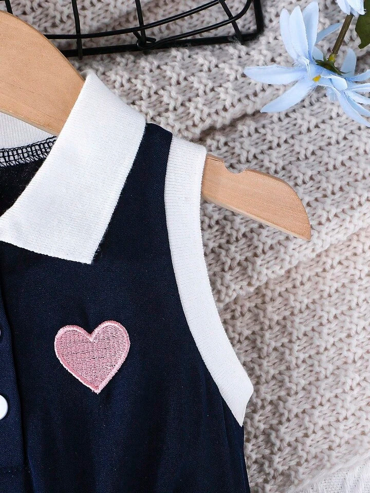 Baby Girl's Fashion Heart Embroidery Sleeveless Lapel Open Front Casual Everyday Dress