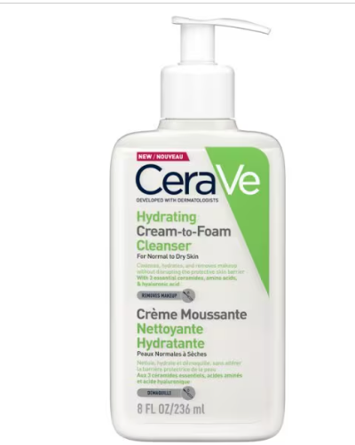 Strips away dirt and make up without stripping the skin barrier. With 3 essential ceramides, amino acids & hyaluronic acid . CeraVe Hydrating Cream-to-Foam Cleanser is the one-step foaming cream cleanser your dry skin craves! Thanks to its unique combination of gentle