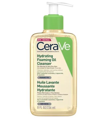 CeraVe Hydrating Foaming Oil Cleanser gently cleanses while providing nourishing comfort that leaves skin on the face & body looking healthy and feeling refreshed. Suitable for normal to very dry skin