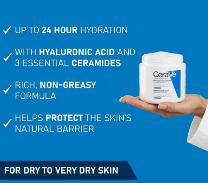 Developed with dermatologists, the rich formula of the CeraVe Moisturising Cream helps to protect the skin's natural barrier with three essential ceramides and MVE technology to provide daily instant and long-lasting hydration.ESSENTIAL CERAMIDES: Contains 3 essential ceramides (1, 3, 6-II) to help protect the skin’s natural barrier