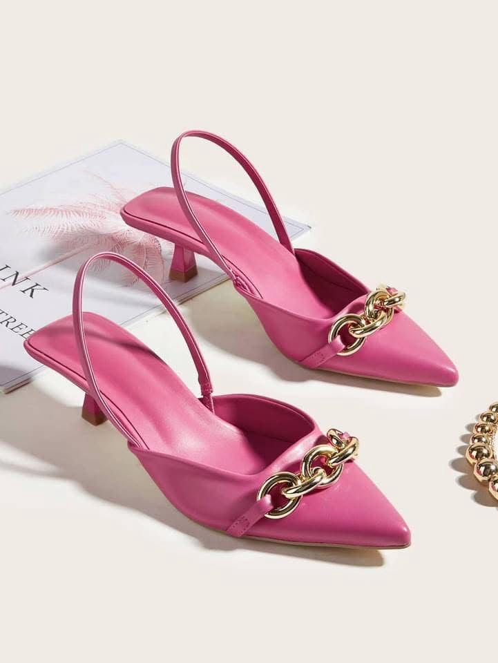 • Design: These pumps feature a pointed toe, offering a sleek and elongated silhouette. The slingback strap ensures a secure fit, while the chain decor adds a touch of sophistication.