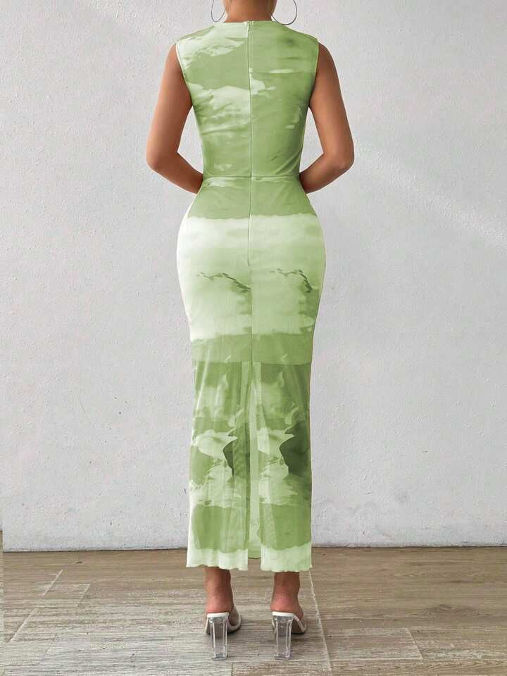 Chiquease Tie Dye Mock Neck Mesh Bodycon Dress Maxi Women Outfit
