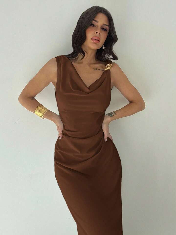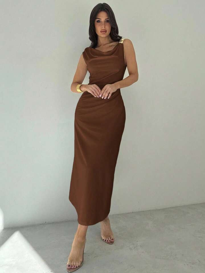 Firerie White Shoulder Strap Ruffle Waist Midi Dress For Women