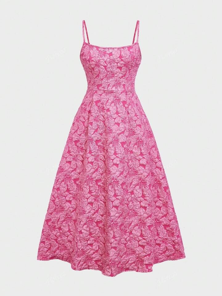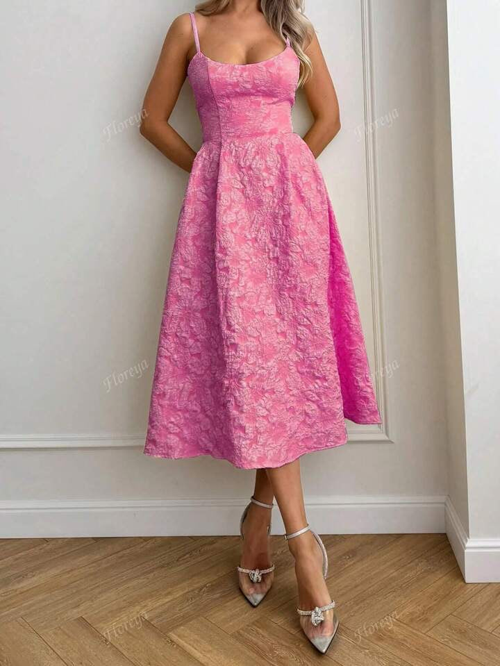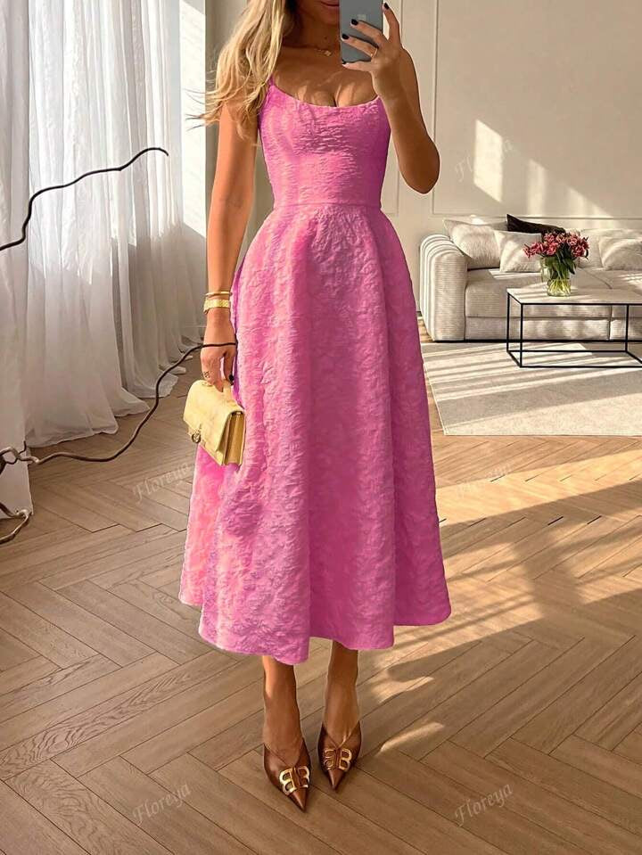 Floreya Summer Wedding Elegant Solid Color French Chic Quality Waist-Cinched Slim Fit Sling Midi Dress