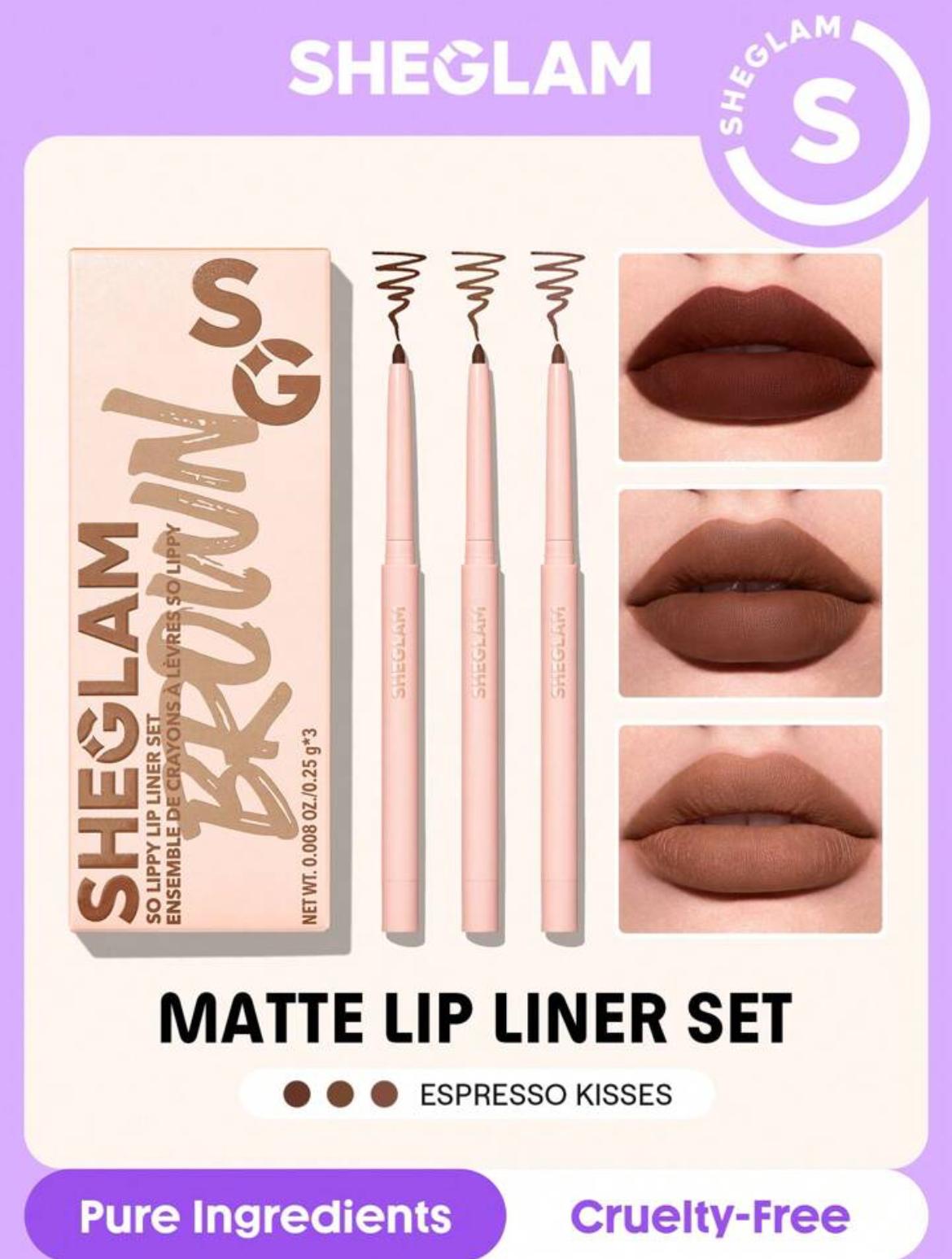 SHEGLAM So Lippy Lip Liner Set-Espresso Kisses 3 Pcs/Set Soft Matte Brown Lip Liner Pencil