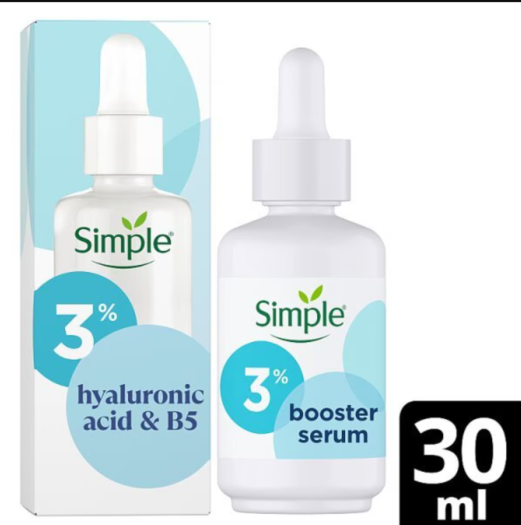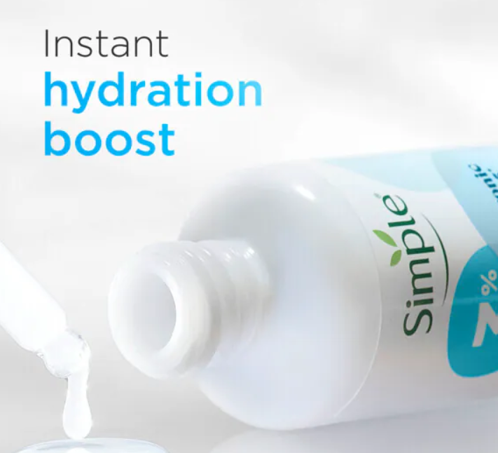 - Simple 3% Hyaluronic Acid Booster Serum Gives Instant Visible Results. 95% Natural Ingredients Calm Dry And Sensitive Skin, Keeping It Moisturised And Plump From Within.