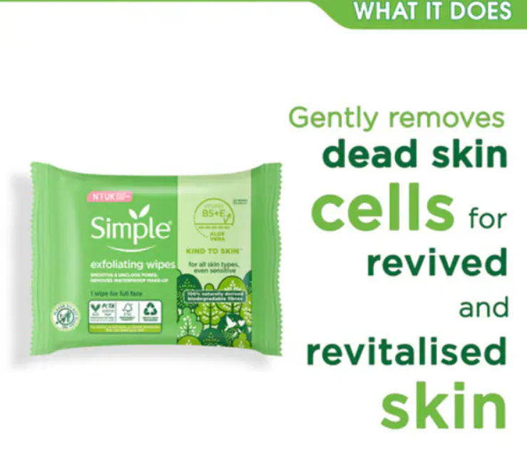 Our Simple Kind to Skin Exfoliating Cleansing Wipes are ideal for getting rid of the dirt and impurities that build upon the skin during the day, or while we sleep.