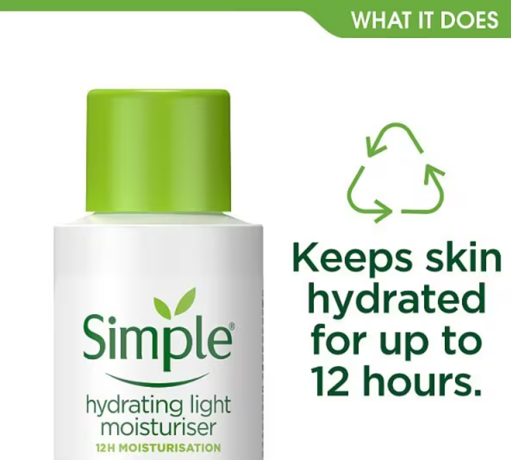 Simple Kind To Skin Hydrating Light Moisturiser Contains The Perfect Blend Of Ingredients To Keep Your Dry Skin Hydrated For Up To 12 Hours. Use This Gentle Lotion From The Uk'S #1 Facial Skin Care Brand* As The Perfect Base For Your Make-Up Or Give Your Dehydrated Skin A Boost Of Hydration Before Bed. Our Light Moisturiser Is A Great Addition To Both Your Morning And Evening Beauty Regimes. Like All Of Our Products, This Lotion Contains No Artificial Perfumes Or Colours And No Harsh Chemicals That Can Upset Your Skin, So It'S Perfect Even For Sensitive Skin.