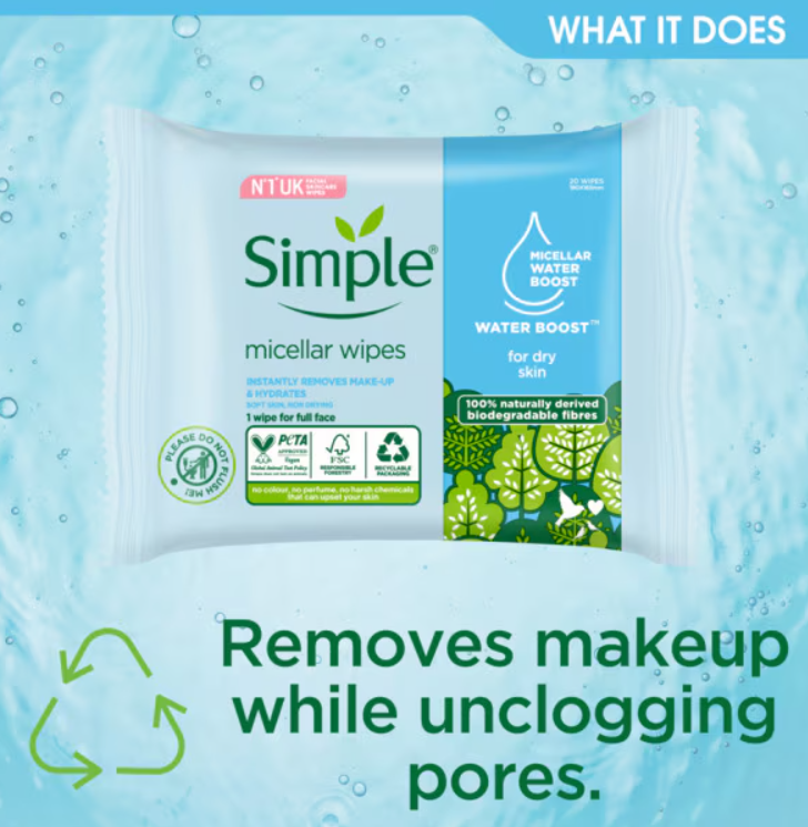 Leaving It Feeling Soft And Supple. Simple Micellar Face Wipes Have Combined The Micellar Water Technology With Our Convenient Wipe Format. They’Re Gentler Than Soap-Based Cleansers, So Skin Is Not Left Feeling Dry Or Tight, But Clean, Fresh And Instantly Hydrated. At Simple, The Uk'S No. 1 Facial Skin Care Brand*, We Believe In Being Kind To Skin, People And The Environment.