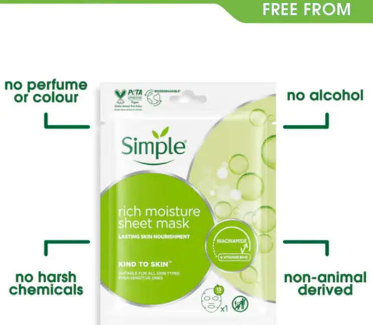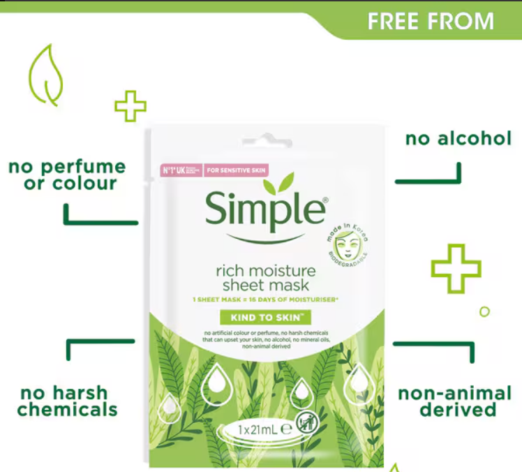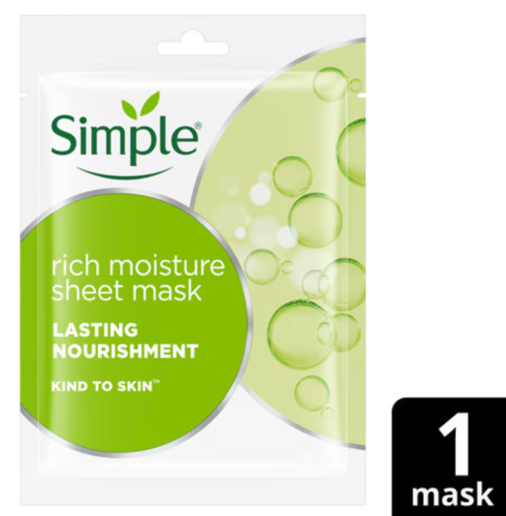Simple Kind to Skin Rich Moisture Sheet Mask helps fight dry city skin, with no messy application