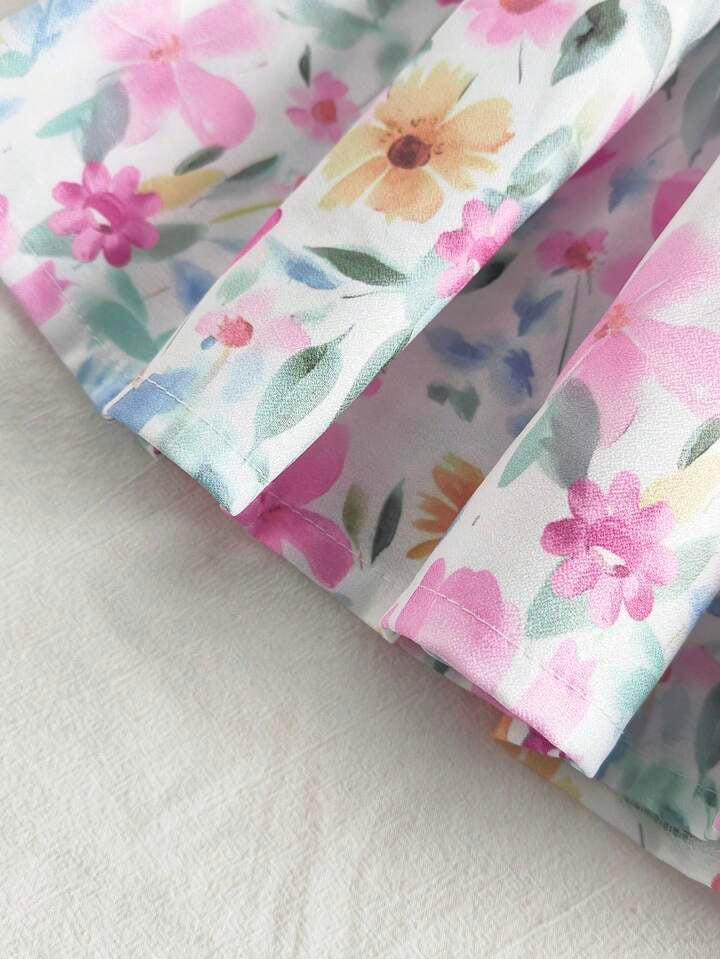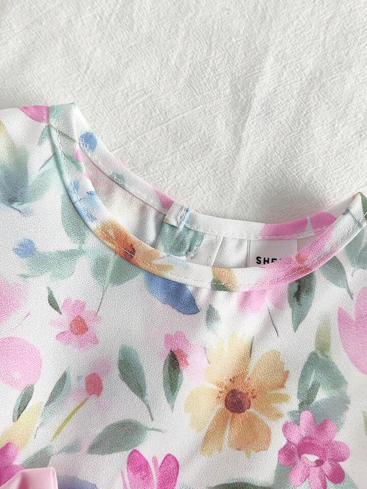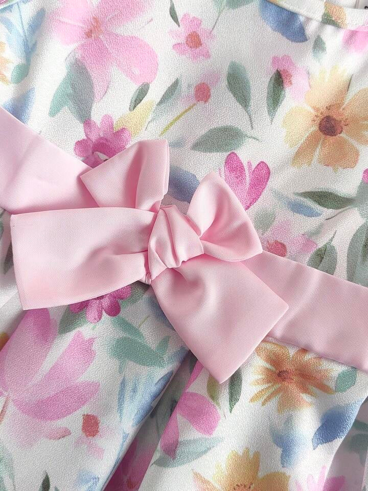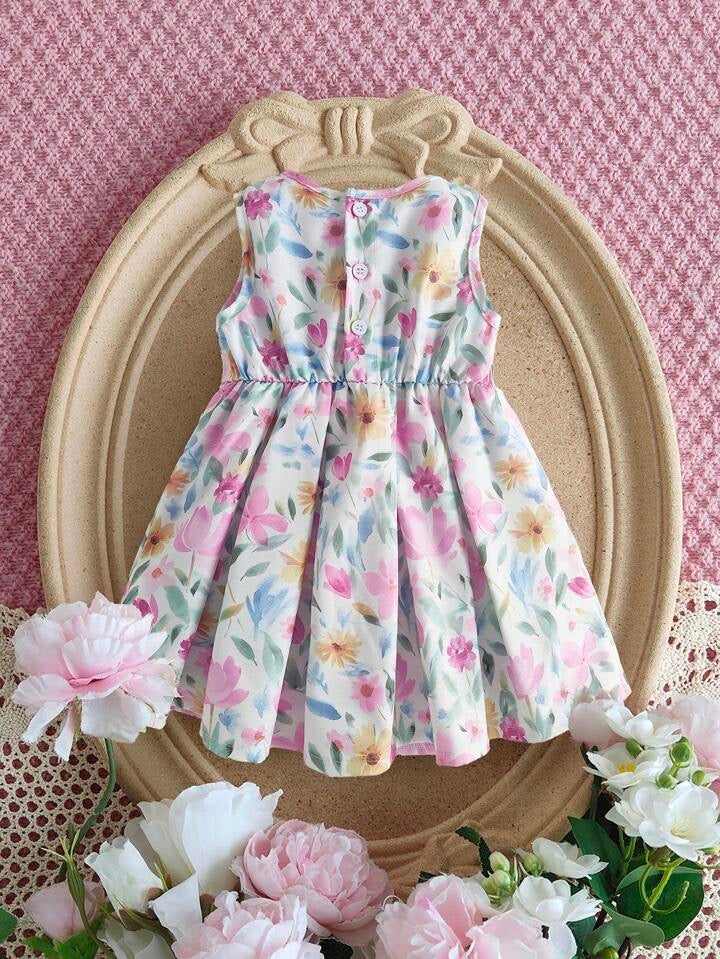Souflis Souflis Baby Girl Spring/Summer Floral Watercolor Print Cinched Waist Bow Sleeveless Princess Dress,