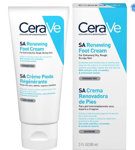 A non irritating formula that exfoliates and moisturises dry, cracked feet and helps protect the skin barrier for a soft, smooth feel.Developed with dermatologists, CeraVe SA Renewing Foot Cream effectively moisturises and helps to protect the natural skin barrier of the feet. This fast absorbing, non greasy cream, with 3 essential ceramides and hyaluronic acid, exfoliates and moisturises extremely dry, rough feet to smooth and improve the texture of the compromised skin. CeraVe Renewing SA Foot Cream is fragrance free & allergy tested.