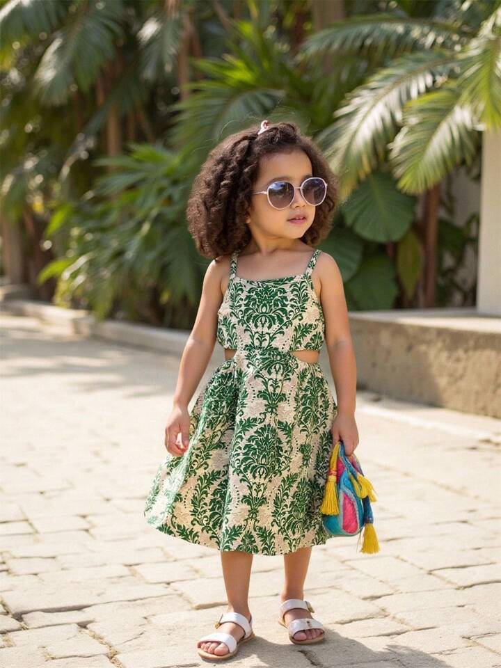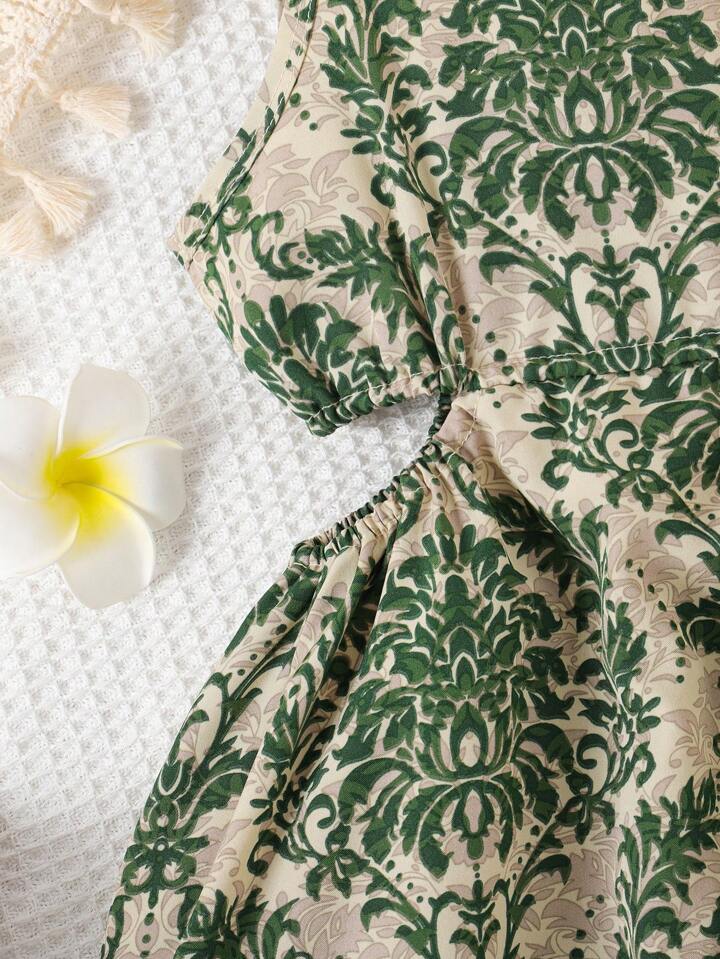 Young Girls' Vacation Style Spaghetti Strap Hollow Out Dress